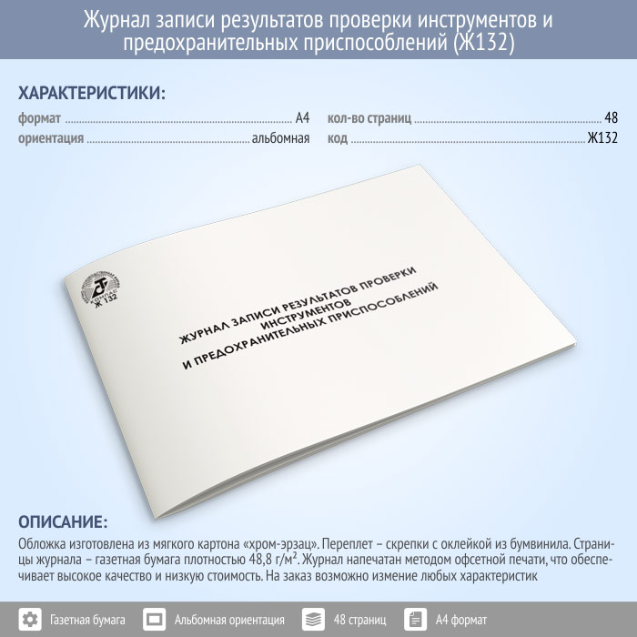 Журнал записи результатов проверки инструментов и предохранительных приспособлений (48 стр., Ж132) в Бердске купить