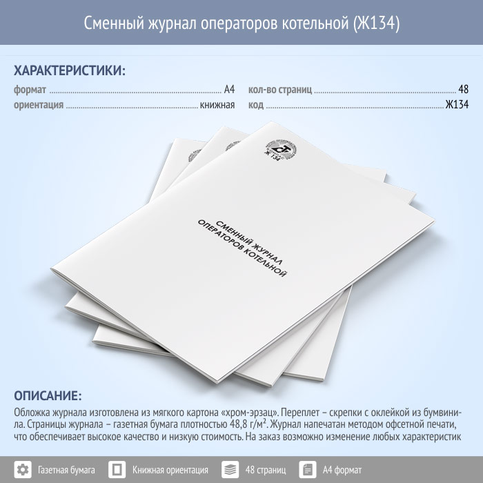 Сменный журнал оператора котельной (48 стр., Ж134) в Бердске купить