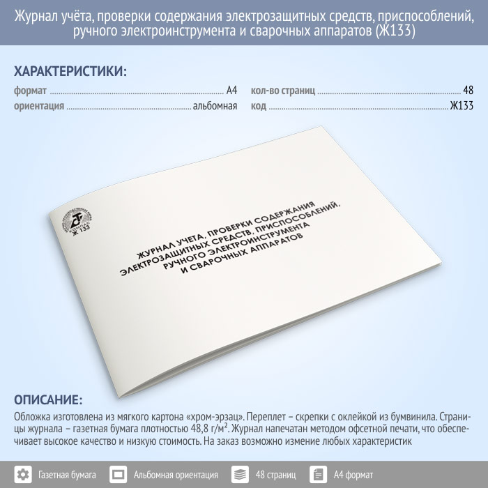 Журнал учета проверки и содержания электрозащитных средств, приспособлений, ручного электроинструмента и сварочных аппаратов (48 стр., Ж133) в Бердске купить