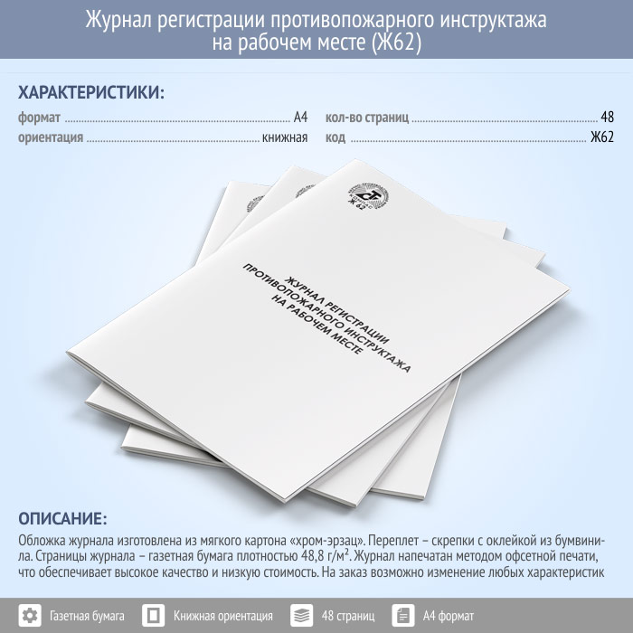 Журнал регистрации противопожарного инструктажа на рабочем месте (48 стр., Ж62) в Бердске купить