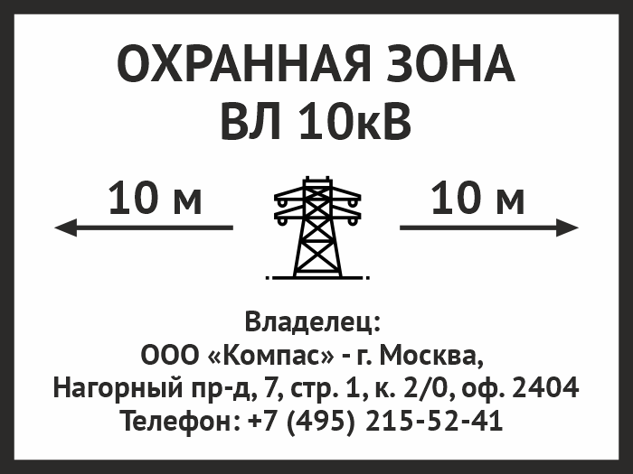 Знак «Охранная зона ВЛ 10 кВ (высоковольтной линии)», OZK-07 (металл, 400х300 мм) в Бердске купить