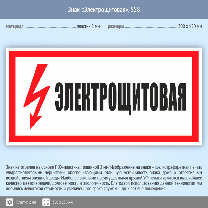 Знак (плакат) «Электрощитовая», S58 (пластик, 300х150 мм) в Бердске купить