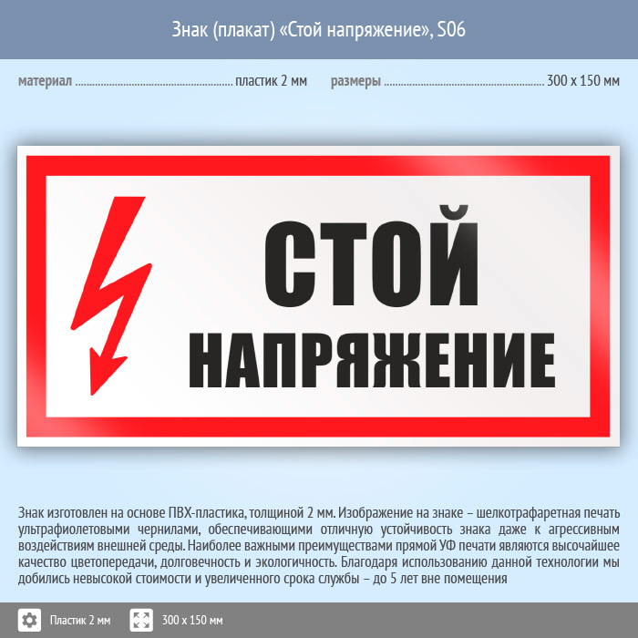 Знак (плакат) «Стой напряжение», S06 (пластик, 300х150 мм) в Бердске купить