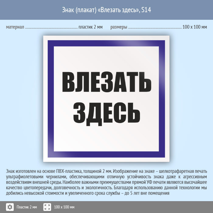 Знак (плакат) «Влезать здесь», S14 (пластик, 100х100 мм) в Бердске купить