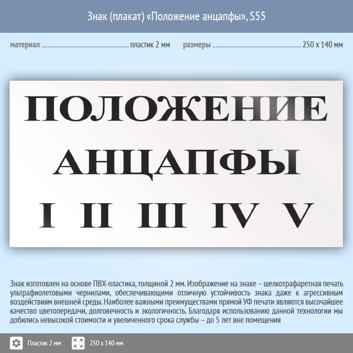 Знак (плакат) «Положение анцапфы», S55 (пластик, 250х140 мм) в Бердске купить