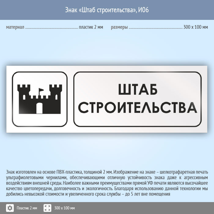 Знак «Штаб строительства», И06 (пластик, 300х100 мм) в Бердске купить