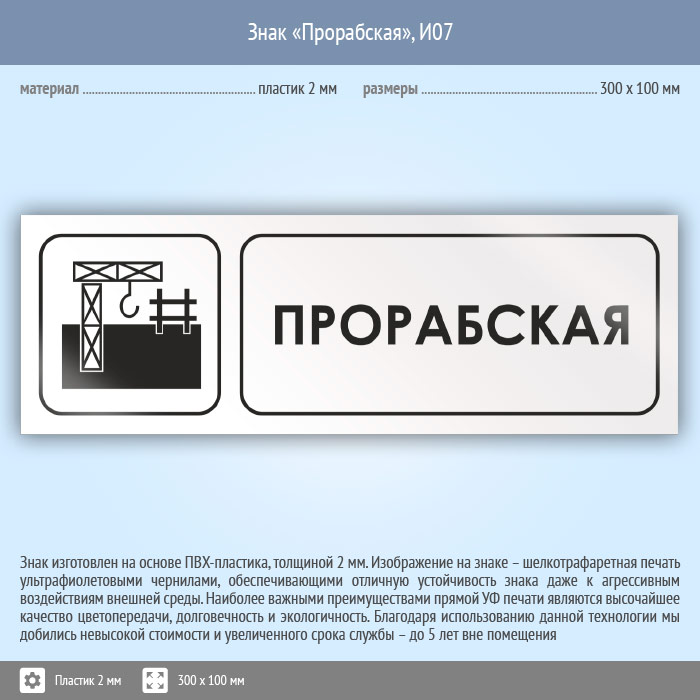 Знак «Прорабская», И07 (пластик, 300х100 мм) в Бердске купить