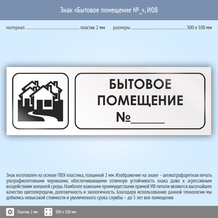 Знак «Бытовое помещение №_», И08 (пластик, 300х100 мм) в Бердске купить
