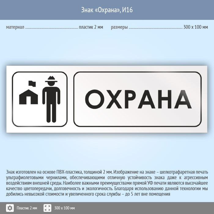 Знак «Охрана», И16 (пластик, 300х100 мм) в Бердске купить