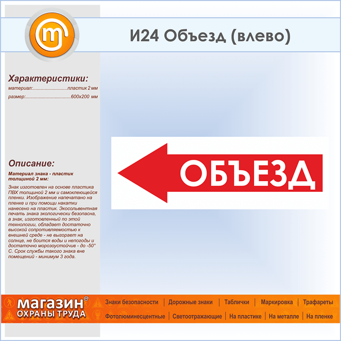 Знак «Объезд (влево)», И24 (пластик, 600х200 мм) в Бердске купить
