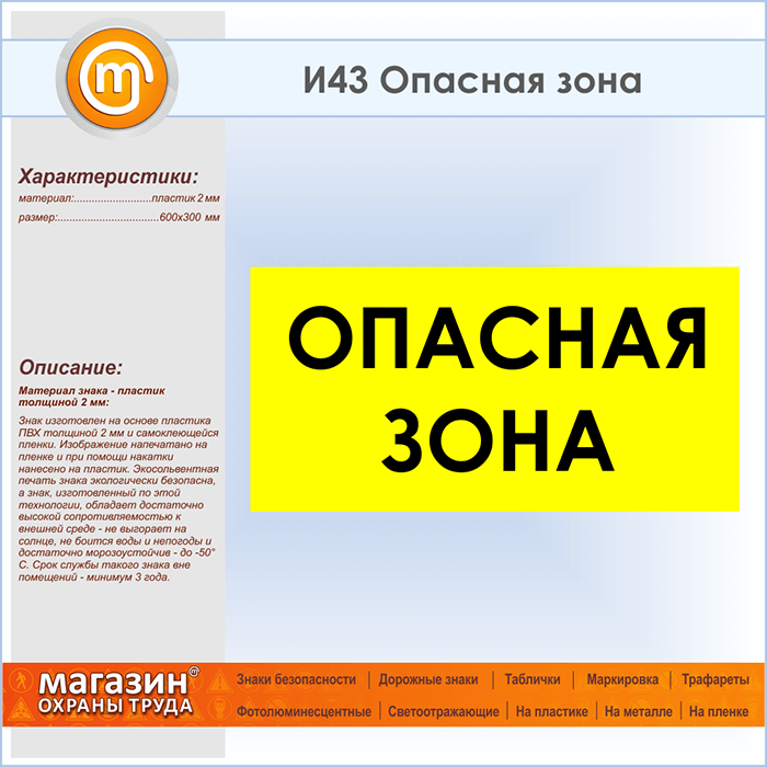 Знак «Опасная зона», И43 (пластик, 600х300 мм) в Бердске купить