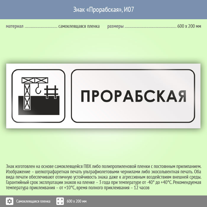 Знак «Прорабская», И07 (пленка, 600х200 мм) в Бердске купить