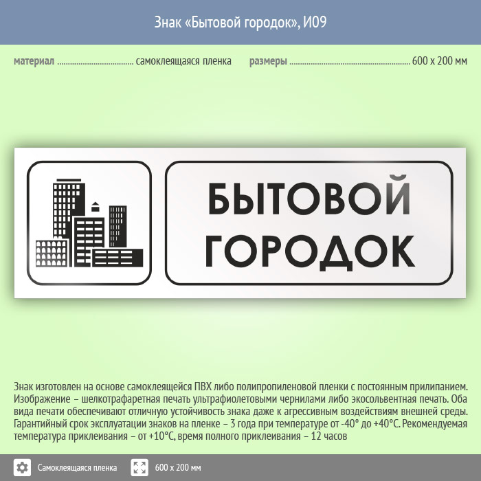 Знак «Бытовой городок», И09 (пленка, 600х200 мм) в Бердске купить