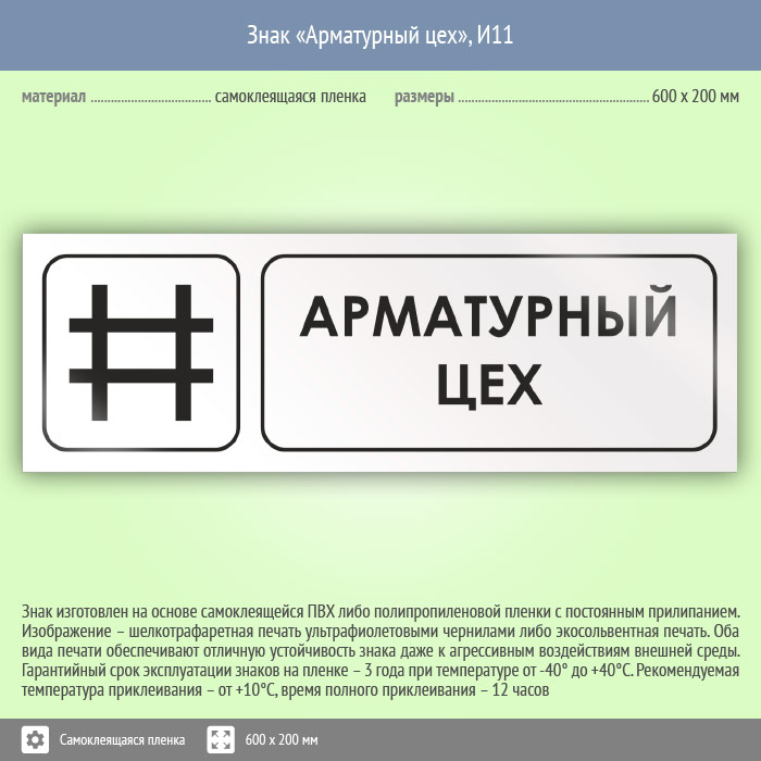 Знак «Арматурный цех», И11 (пленка, 600х200 мм) в Бердске купить