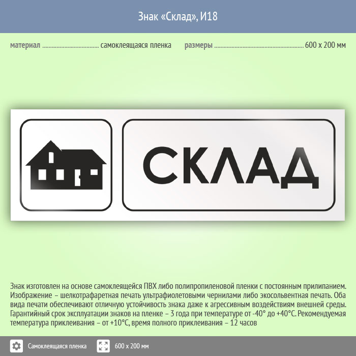 Знак «Склад», И18 (пленка, 600х200 мм) в Бердске купить