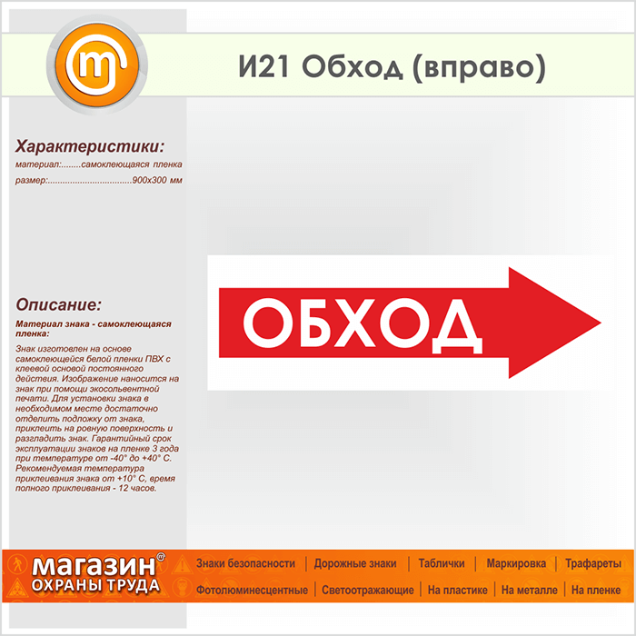 Знак «Обход (вправо)», И21 (пленка, 900х300 мм) в Бердске купить