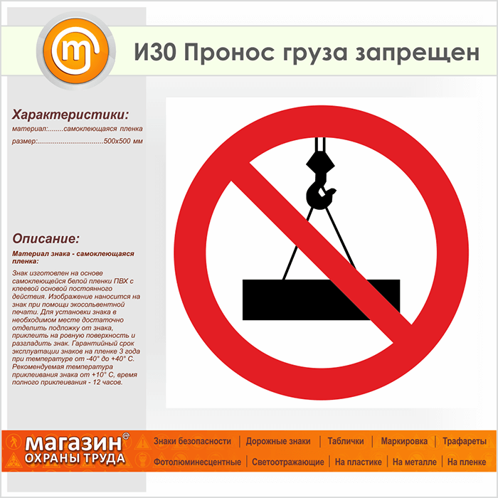 Знак «Пронос груза запрещен», И30 (пленка, 500х500 мм) в Бердске купить