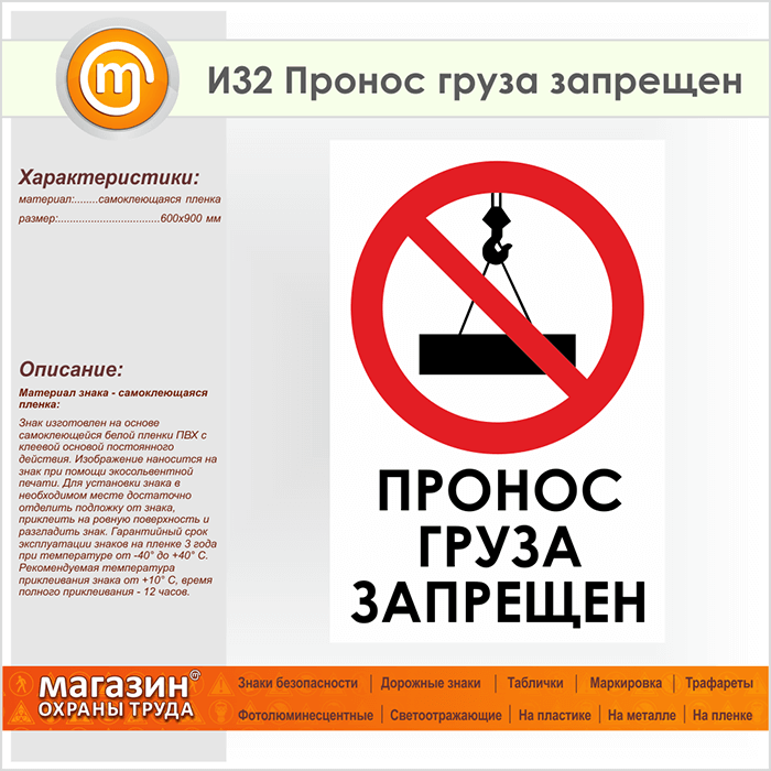 Знак «Пронос груза запрещен», И32 (пленка, 600х900 мм) в Бердске купить
