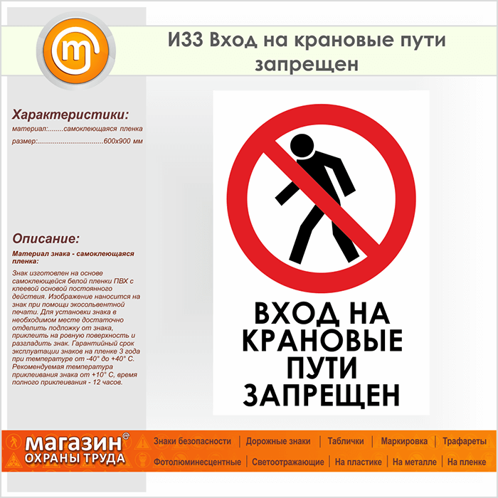 Знак «Вход на крановые пути запрещен», И33 (пленка, 600х900 мм) в Бердске купить