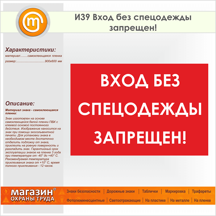 Знак «Вход без спецодежды запрещен!», И39 (пленка, 900х600 мм) в Бердске купить