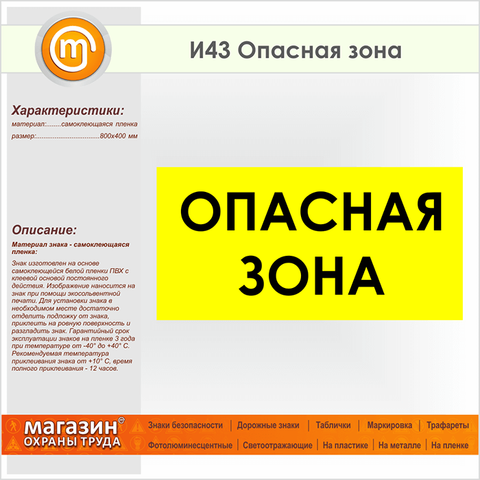 Знак «Опасная зона», И43 (пленка, 800х400 мм) в Бердске купить