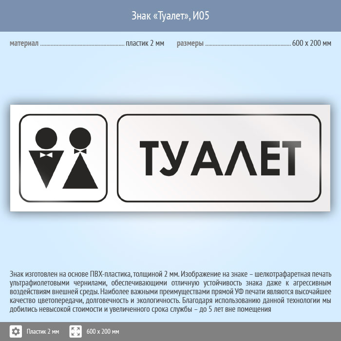 Знак «Туалет», И05 (пластик, 600х200 мм) в Бердске купить