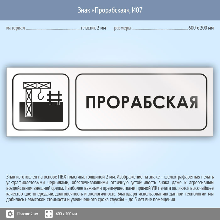 Знак «Прорабская», И07 (пластик, 600х200 мм) в Бердске купить