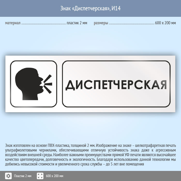 Знак «Диспетчерская», И14 (пластик, 600х200 мм) в Бердске купить