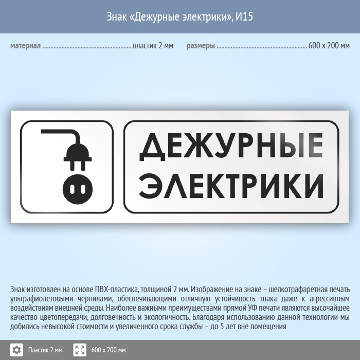 Знак «Дежурные электрики», И15 (пластик, 600х200 мм) в Бердске купить