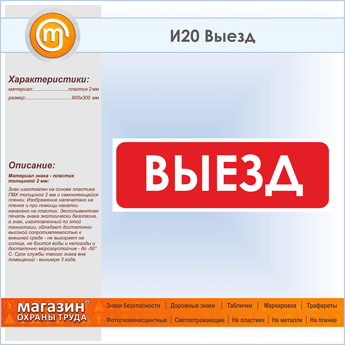 Знак «Выезд», И20 (пластик, 900х300 мм) в Бердске купить