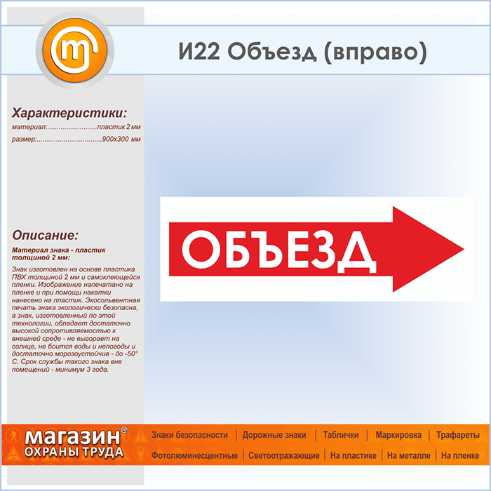 Знак «Объезд (вправо)», И22 (пластик, 900х300 мм) в Бердске купить