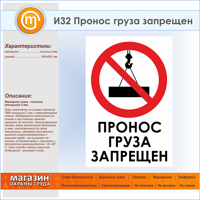 Знак «Пронос груза запрещен», И32 (пластик, 600х900 мм) в Бердске купить