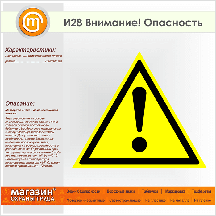 Знак «Внимание! Опасность», И28 (пленка, сторона 700 мм) в Бердске купить