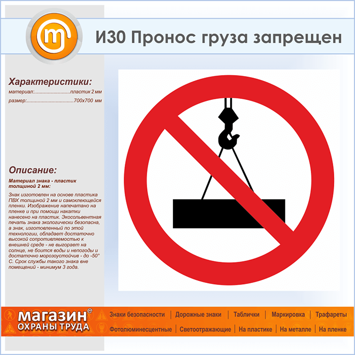 Знак «Пронос груза запрещен», И30 (пластик, 700х700 мм) в Бердске купить