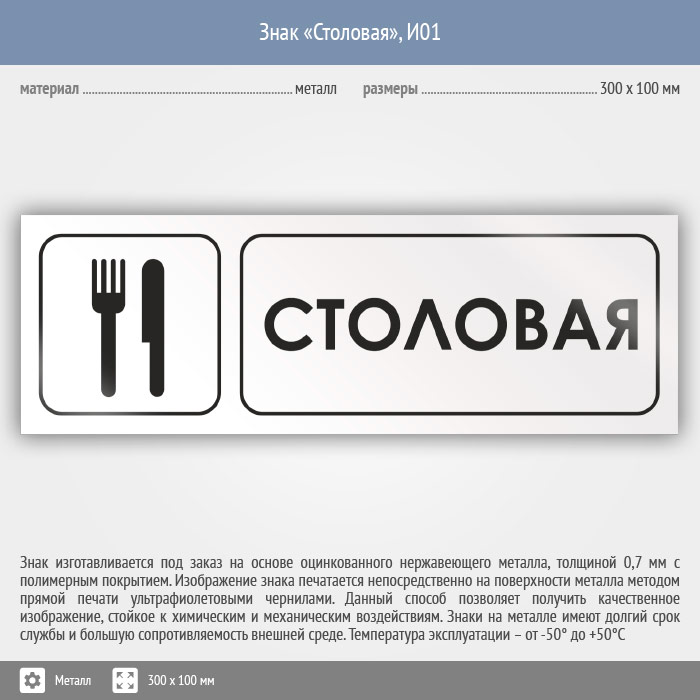Знак «Столовая», И01 (металл, 300х100 мм) в Бердске купить