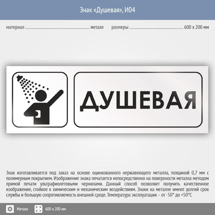 Знак «Душевая», И04 (металл, 600х200 мм) в Бердске купить