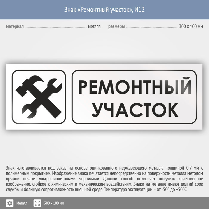 Знак «Ремонтный участок», И12 (металл, 300х100 мм) в Бердске купить