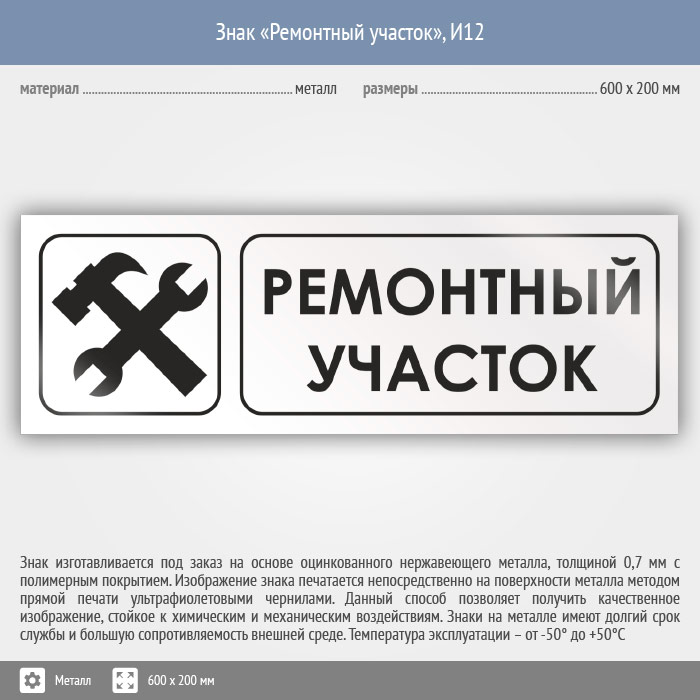 Знак «Ремонтный участок», И12 (металл, 600х200 мм) в Бердске купить