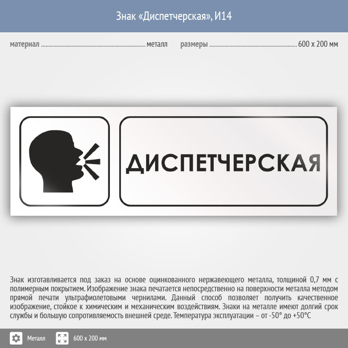 Знак «Диспетчерская», И14 (металл, 600х200 мм) в Бердске купить