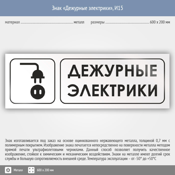 Знак «Дежурные электрики», И15 (металл, 600х200 мм) в Бердске купить