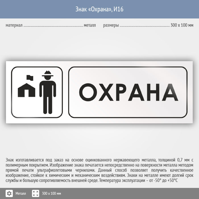 Знак «Охрана», И16 (металл, 300х100 мм) в Бердске купить