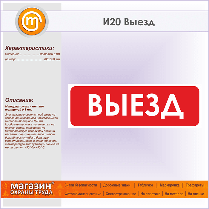 Знак «Выезд», И20 (металл, 900х300 мм) в Бердске купить