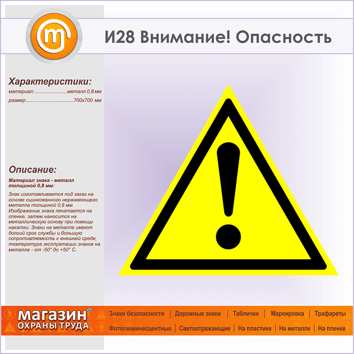 Знак «Внимание! Опасность», И28 (металл, сторона 700 мм) в Бердске купить