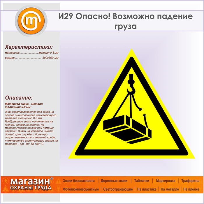 Знак «Опасно! Возможно падение груза», И29 (металл, сторона 300 мм) в Бердске купить
