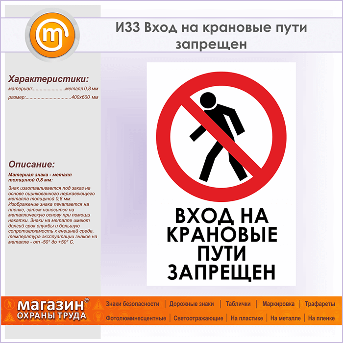 Знак «Вход на крановые пути запрещен», И33 (металл, 400х600 мм) в Бердске купить