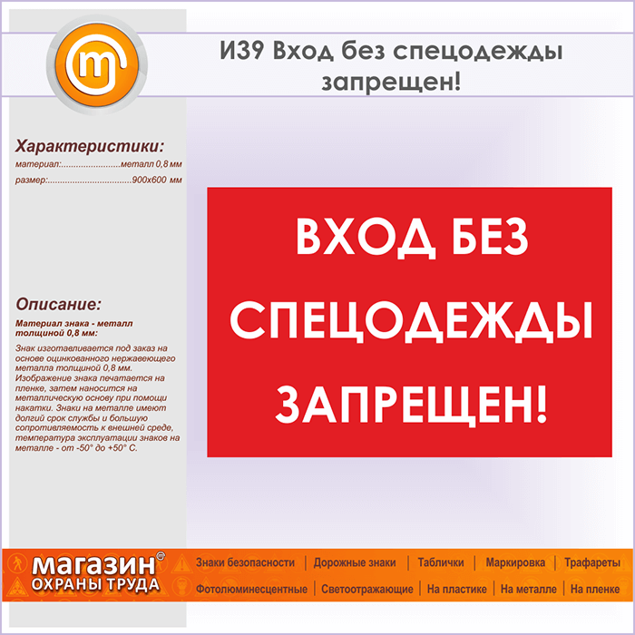 Знак «Вход без спецодежды запрещен!», И39 (металл, 900х600 мм) в Бердске купить