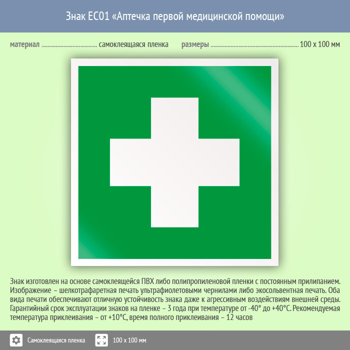 Знак EC01 «Аптечка первой медицинской помощи» (пленка, 100х100 мм) в Бердске купить