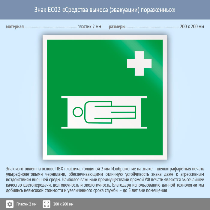 Знак EC02 «Средства выноса (эвакуации) пораженных» (пластик, 200х200 мм) в Бердске купить