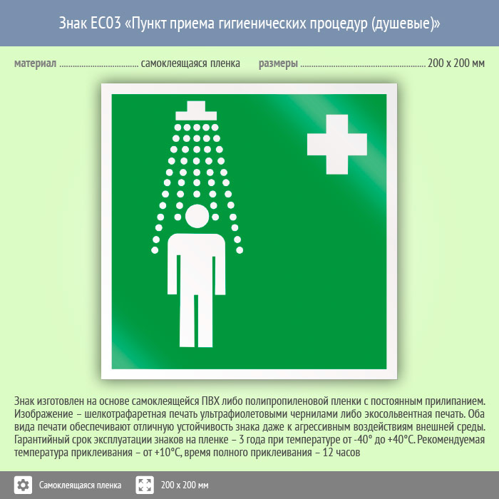 Знак EC03 «Пункт приема гигиенических процедур (душевые)» (пленка, 200х200 мм) в Бердске купить