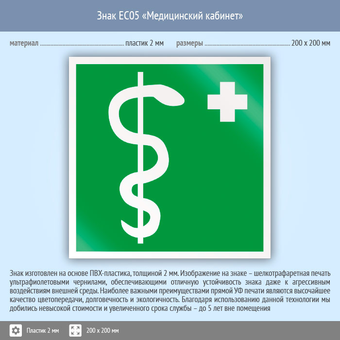 Знак EC05 «Медицинский кабинет» (пластик, 200х200 мм) в Бердске купить